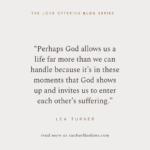 In saying these things and not holding space for the sadness, we silence others from expressing their pain, and in doing so, they feel alone and isolated. Instead of openly talking about their loss, they pretend to be happy and say things like, “God is so good. Aren’t we blessed?”